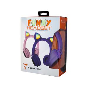 TECHMADE FUNNY CUFFIE SENZA FILO LED MIC E TASTI FUNZ.PURPLE