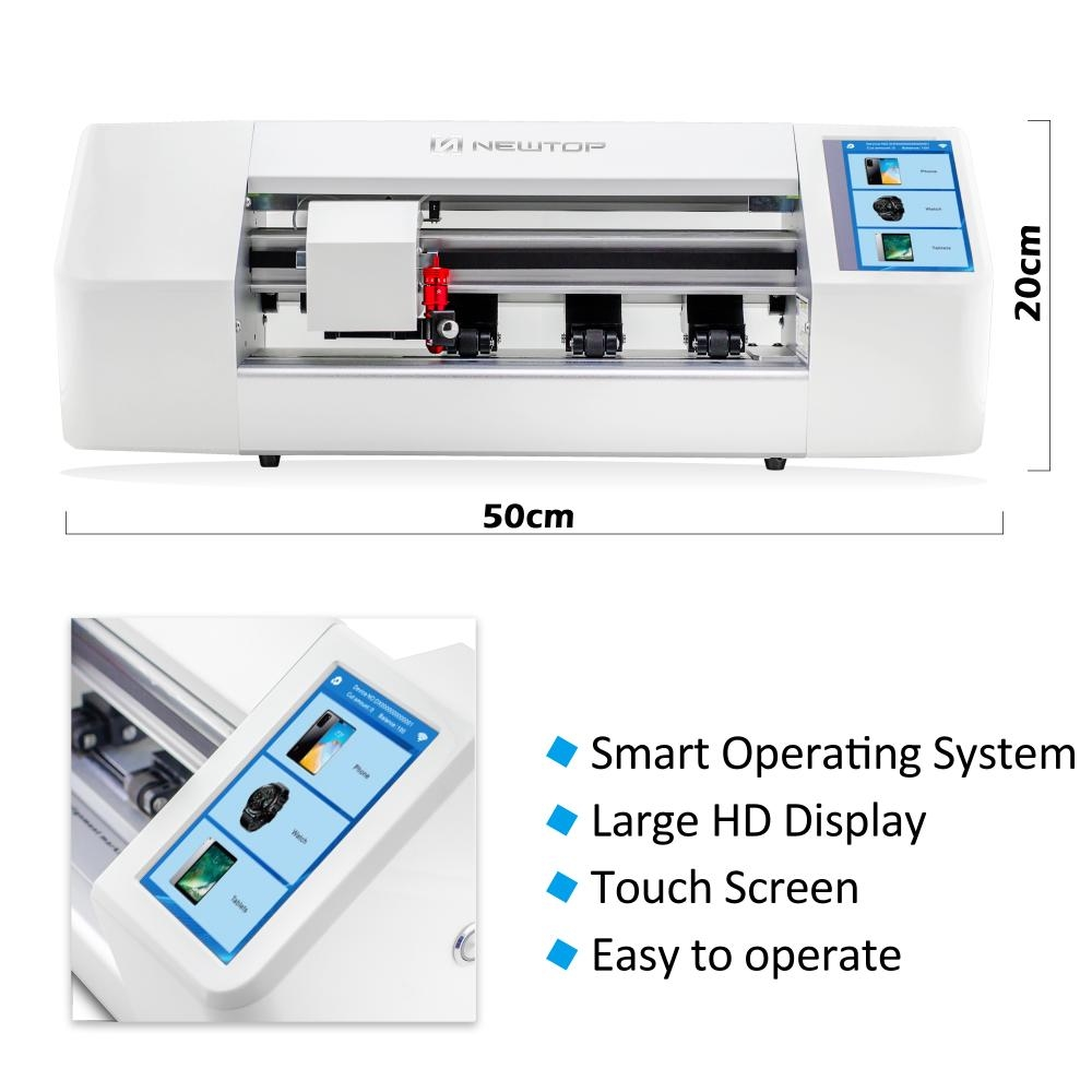 Plotter taglia pellicole NEWTOP è una macchina che realizza pellicole Shockproof su misura per qualsiasi device. Dotata di un database che ad oggi conta migliaia di modelli, consente di tagliare pellicole universali secondo le dimensioni del modello scelto, producendo pellicole protettive per qualsiasi dispositivo in pochi secondi. Il database è aggiornato settimanalmente, e rende il dispositivo sempre al passo con i device di ultima generazione, garantendo la massima flessibilità di utilizzo ed evitando rimanenze di magazzino. Con il plotter è possibile produrre pellicole per lo schermo e la scocca posteriore di smartphone, smartwatch, fotocamere, cuffie e lenti. Un'unica macchina per soddisfare le esigenze di tutti i clienti ed evitare sprechi.