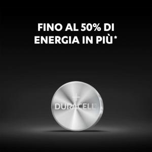 Pila Duracell Plus di tipo Coin Cell. Ad alta potenza, adatta per dispositivi elettronici.