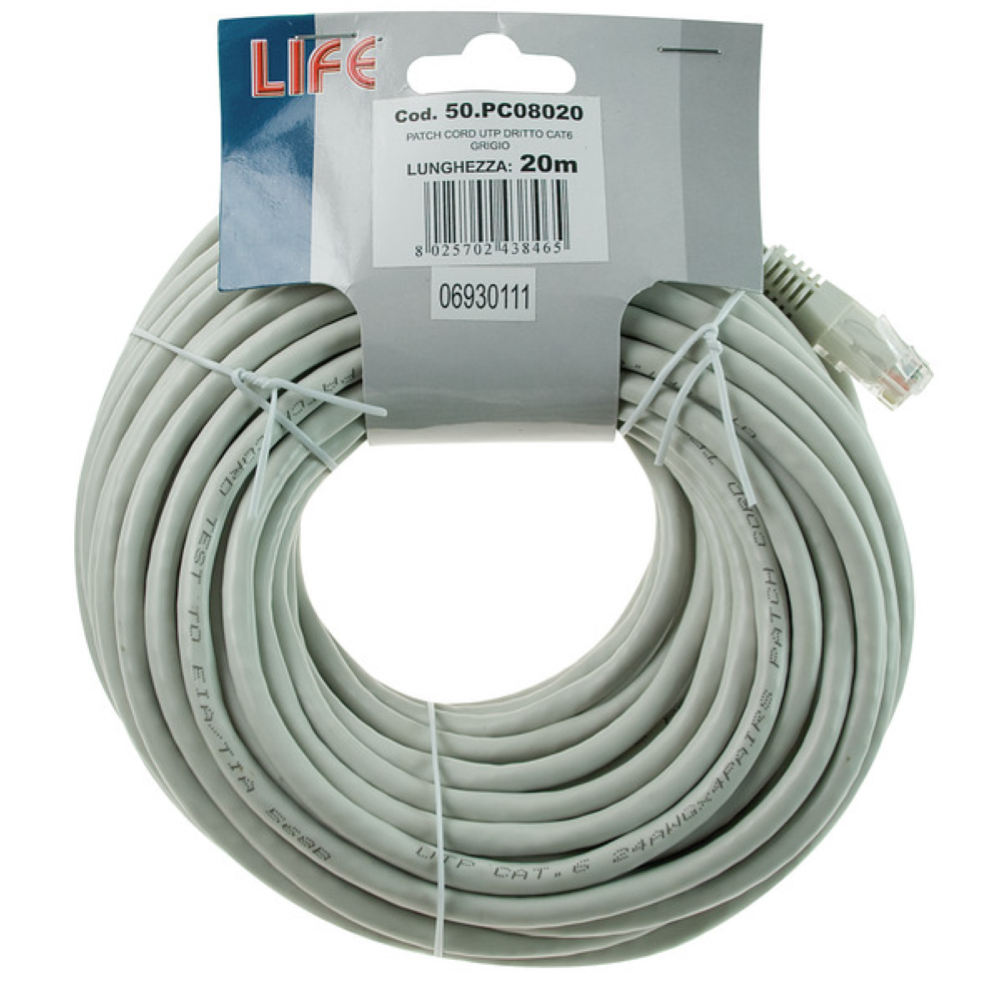 LIFE CAVO ETHERNET UTP CAT6 20M GRIGIO