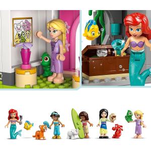 -Cosa è compreso nel set? Un castello LEGO costruibile a 3 livelli dotato di diverse stanze, 5 mini bamboline dei personaggi LEGO | Disney di Ariel, Rapunzel, Mulan, Jasmine e Vaiana, e i loro 5 animali domestici Flounder, Pascal, Rajah, Pua e Mushu
