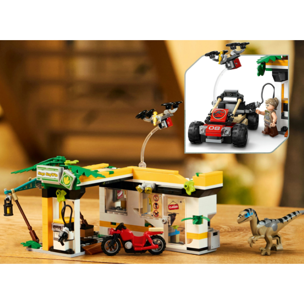 Set di gioco dettagliato: questo set LEGO® Jurassic World include una stazione di ricarica con accessori per la narrazione di storie, un’area di accampamento e un albero, una piccola moto giocattolo, un drone e un fuoristrada con rimorchio