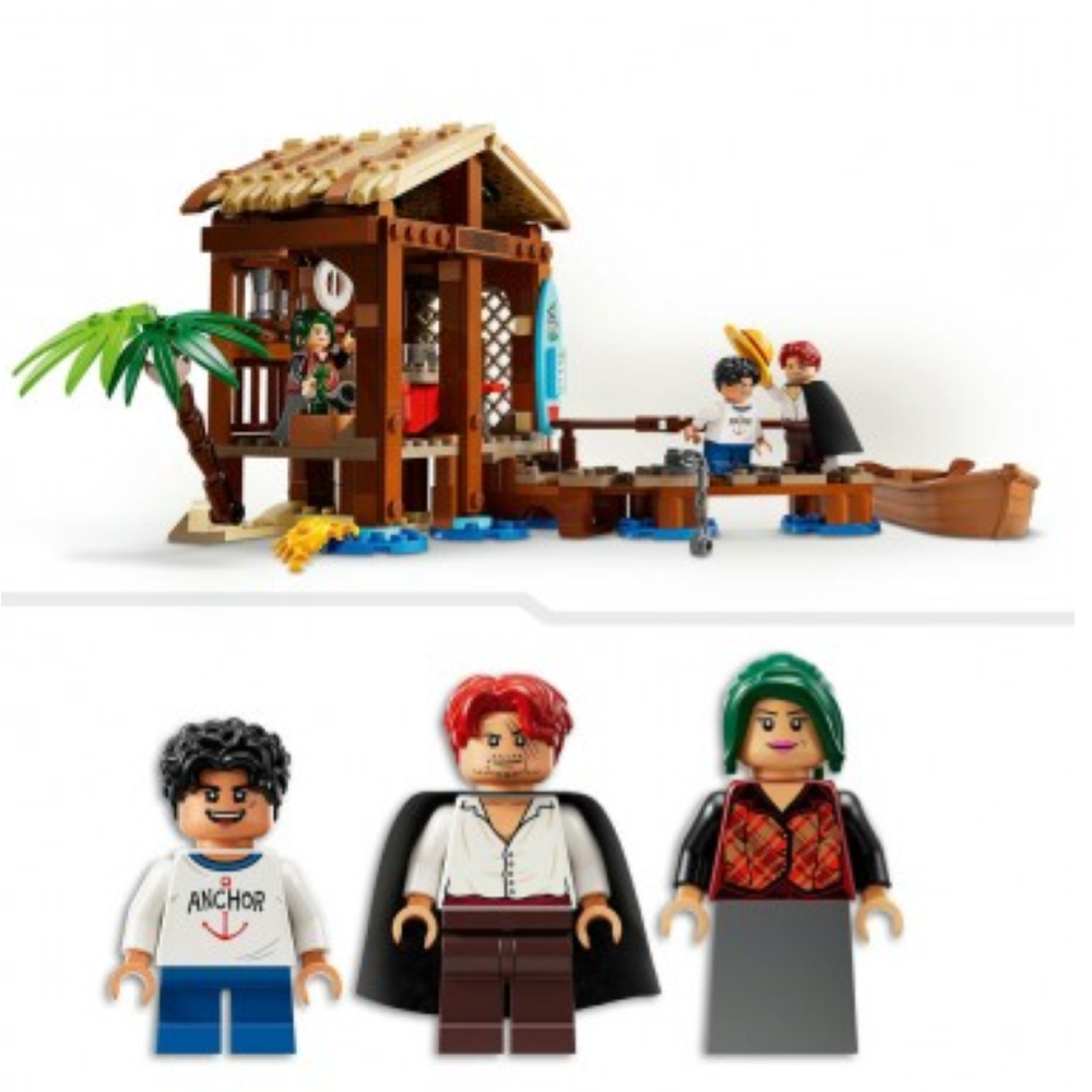 I bambini possono rimuovere il tetto del negozio sulla spiaggia per accedere al suo interno ricco di divertimento. I bambini troveranno gli accessori per gestire il negozio e intrattenere i clienti. C’è un poster "Ricercato" da attaccare alla parete e spazio per altri poster "Ricercato" disponibili in altri modelli LEGO® ONE PIECE (disponibili separatamente). All’esterno, c’è una barca pirata giocattolo attraccata al molo con una catena. Il set include le minifigure di Luffy, Shanks e Makino, 3 personaggi memorabili della serie Netflix. Per tanto divertimento digitale in più, i costruttori possono ingrandire, ruotare i modelli in 3D e seguire i loro progressi utilizzando l’intuitiva app LEGO Builder. Il set contiene 299 pezzi.