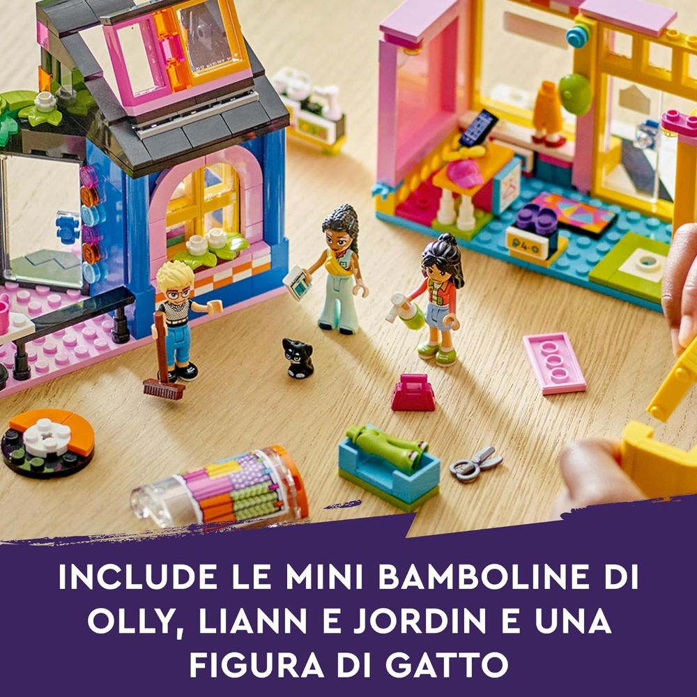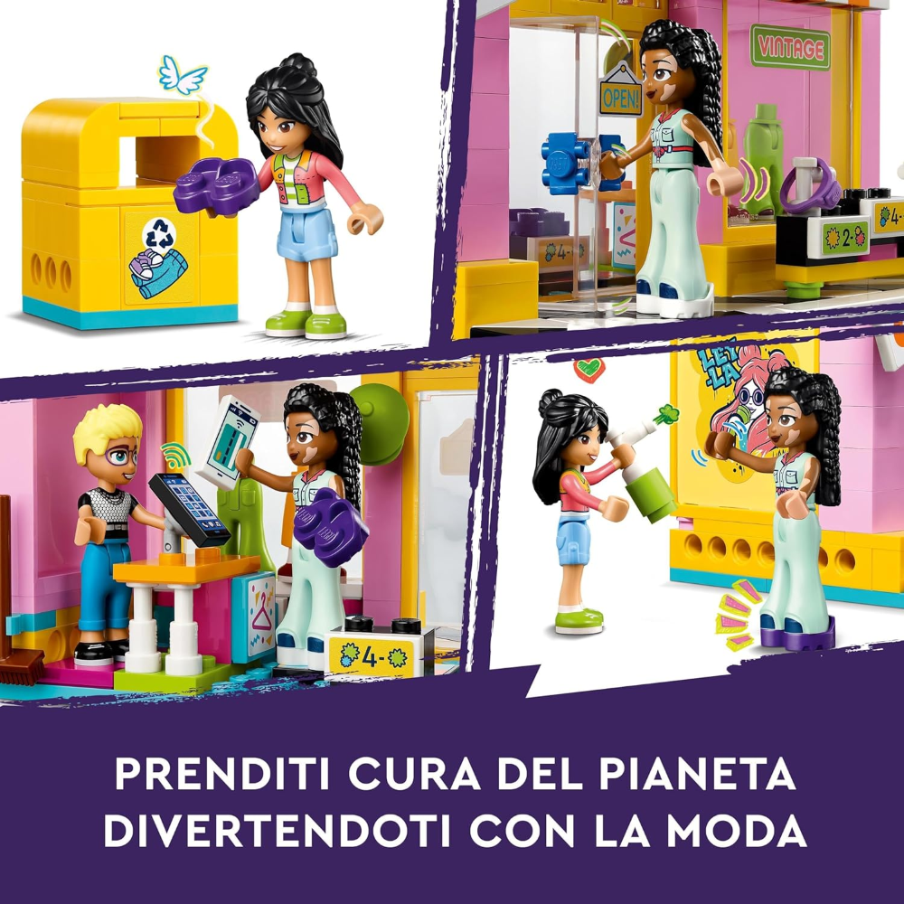 Set Boutique vintage LEGO® Friends – questo giocattolo socio-emotivo include un negozio costruibile con lavanderia, 3 mini-doll, un gatto e tanti accessori di moda per i bambini dai 6 anni in su