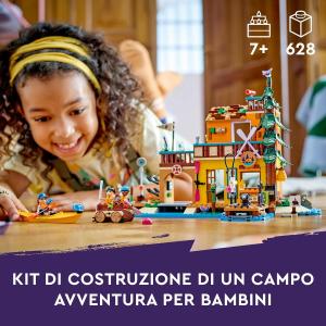 Questo set LEGO Friends è ricco di accessori per infinite possibilità di narrazione di storie. All’interno del campo avventure puoi noleggiare l’attrezzatura, un frigorifero con snack, una doccia, un kit di pronto soccorso, trofei e altro ancora. Dopo una giornata piena di divertimento, gli amici possono incontrarsi nella zona comune o fare una partita a ping pong.