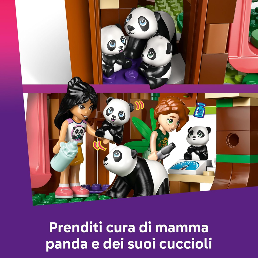 Comprende 2 personaggi LEGO Friends e 3 panda: in questo set Autumn e Liann si prendono cura di mamma panda e dei suoi 2 cuccioli nel santuario ricco di alberi di bambù; tanti spunti creativi per i giochi educativi dei bambini amanti degli animali