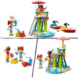 Include 2 moto d’acqua giocattolo: questo set giocattolo con bagnino contiene i personaggi LEGO® Friends Leo e Candi, più 2 moto d’acqua, così i bambini potranno creare tante storie sulla spiaggia di Heartlake City per gli amici