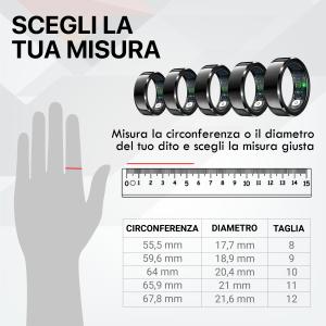 TECHMADE SMART RING NEXA [Ø12]- Fitness Tracker Bluetooth - per iOS e Android / Taglia 12 Ø