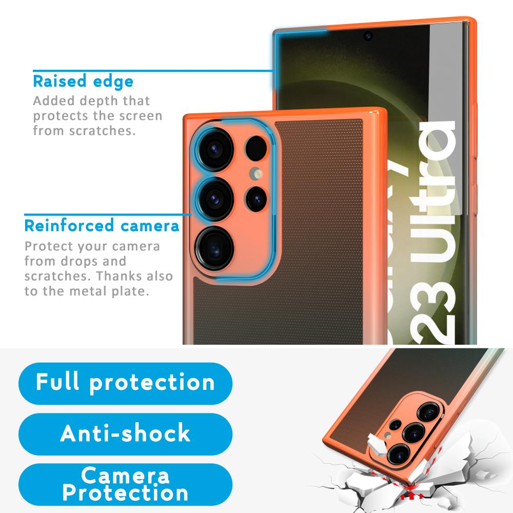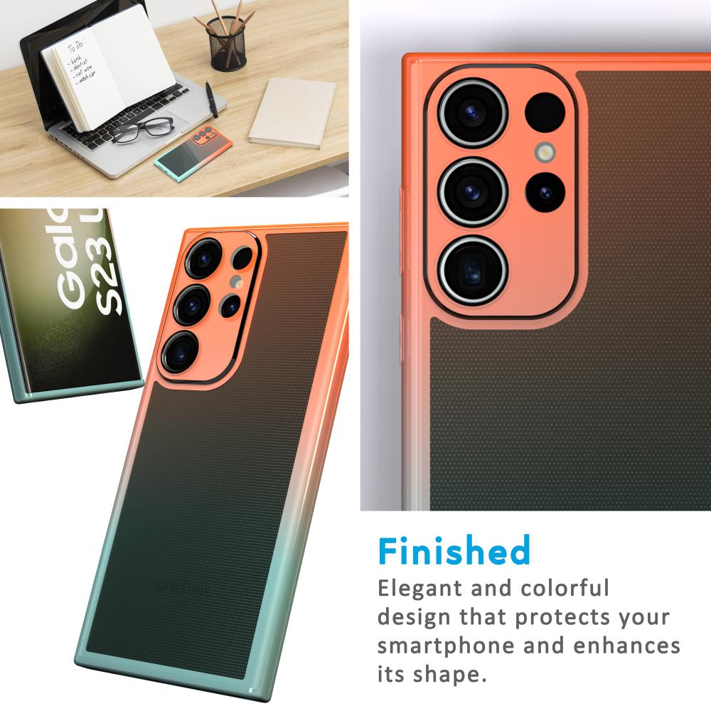 Progettata con grande cura per offrire una combinazione perfetta di stile e funzionalità. Inizia con il suo design accattivante: i due colori sfumati in trasparenza aggiungono un tocco di raffinatezza al tuo dispositivo, mentre il retro trasparente consente di ammirare la bellezza originale del telefono. La cornice presenta un colore sfocato più intenso ed opaco, che dona un aspetto distintivo e moderno.