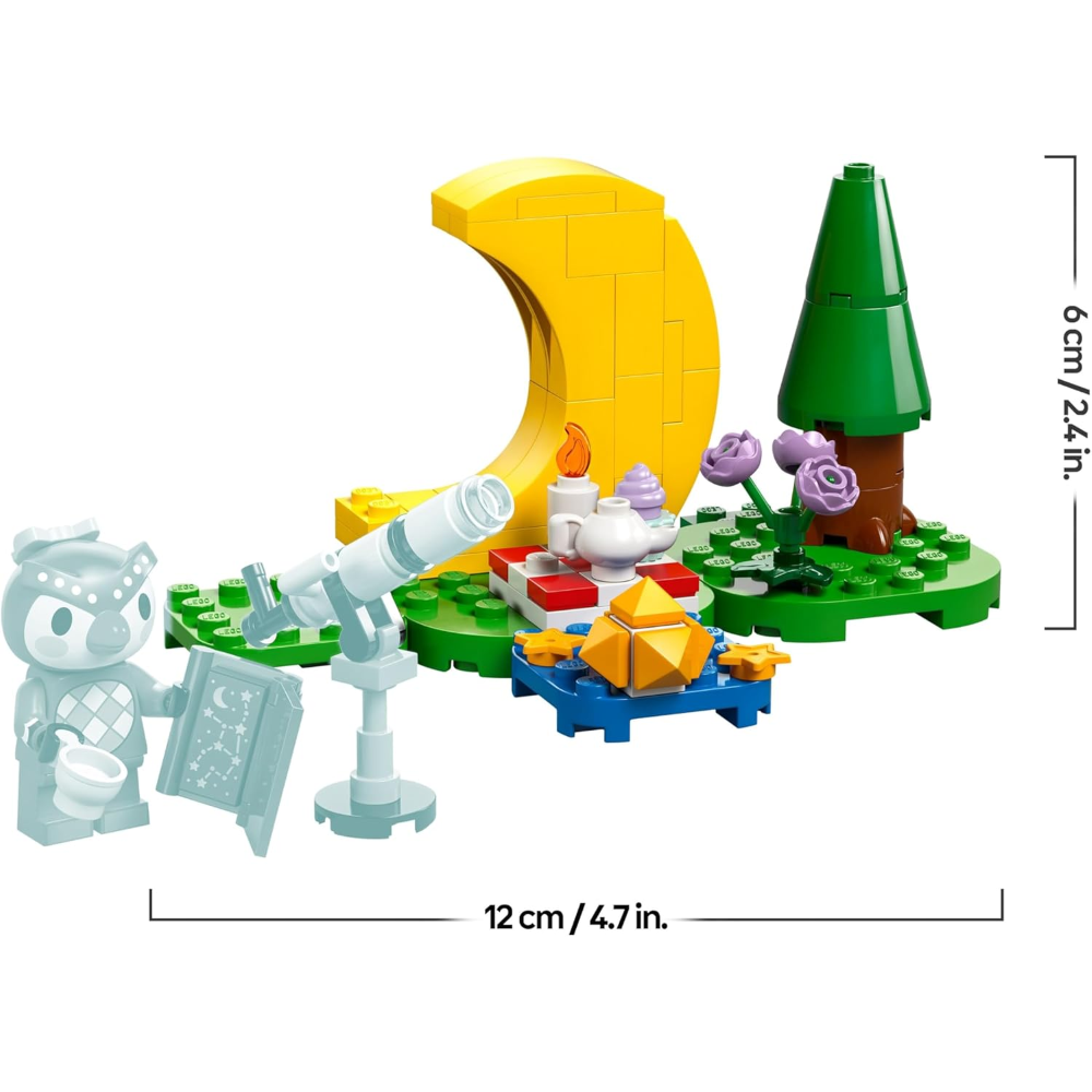 Giochi di fantasia con animali LEGO: il set contiene una minifigure della civetta Celeste di Animal Crossing, un telescopio giocattolo, un libro di astronomia, un falò, una teiera, una tazza, un cupcake e preziosi frammenti di stelle
