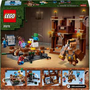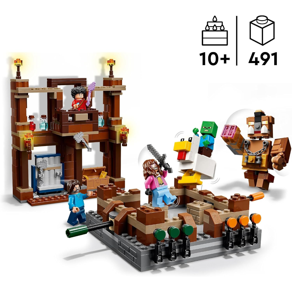 Magione giocattolo Minecraft: il set contiene un ring di combattimento funzionale con segnapunti davanti alla facciata di una casa giocattolo LEGO Minecraft, con forziere rimovibile e porta-armi
