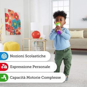 2 modi per giocare! Registra: Registra la tua voce e riascoltala con musica ed effetti allegri Cantiamo: Canzoncine incalzanti che insegnano a contare, i colori, l'alfabeto, gli opposti e le parti del corpo. E cantaci sopra!