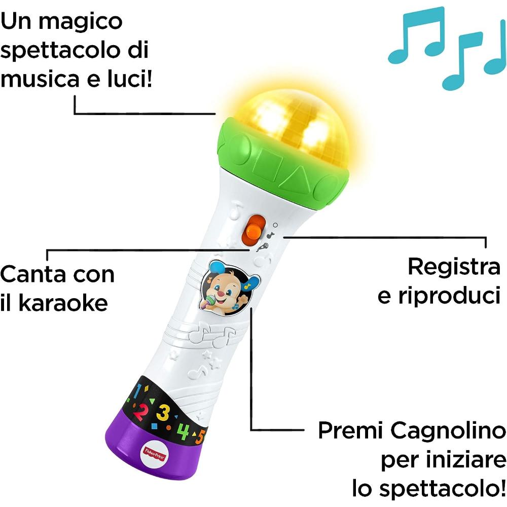 Dove le nozioni base dell'apprendimento entrano in gioco Contare e Colori: I piccoli possono contare e cantare con Cagnolino fino a 20! E si possono anche scoprire colori particolari con le canzoncine, mentre il microfono si accende del colore cantato! Alfabeto & Contrari: I bambini adoreranno cantare l'alfabeto con Cagnolino. Inoltre, una familiare e simpatica melodia insegna ai bambini gli opposti!