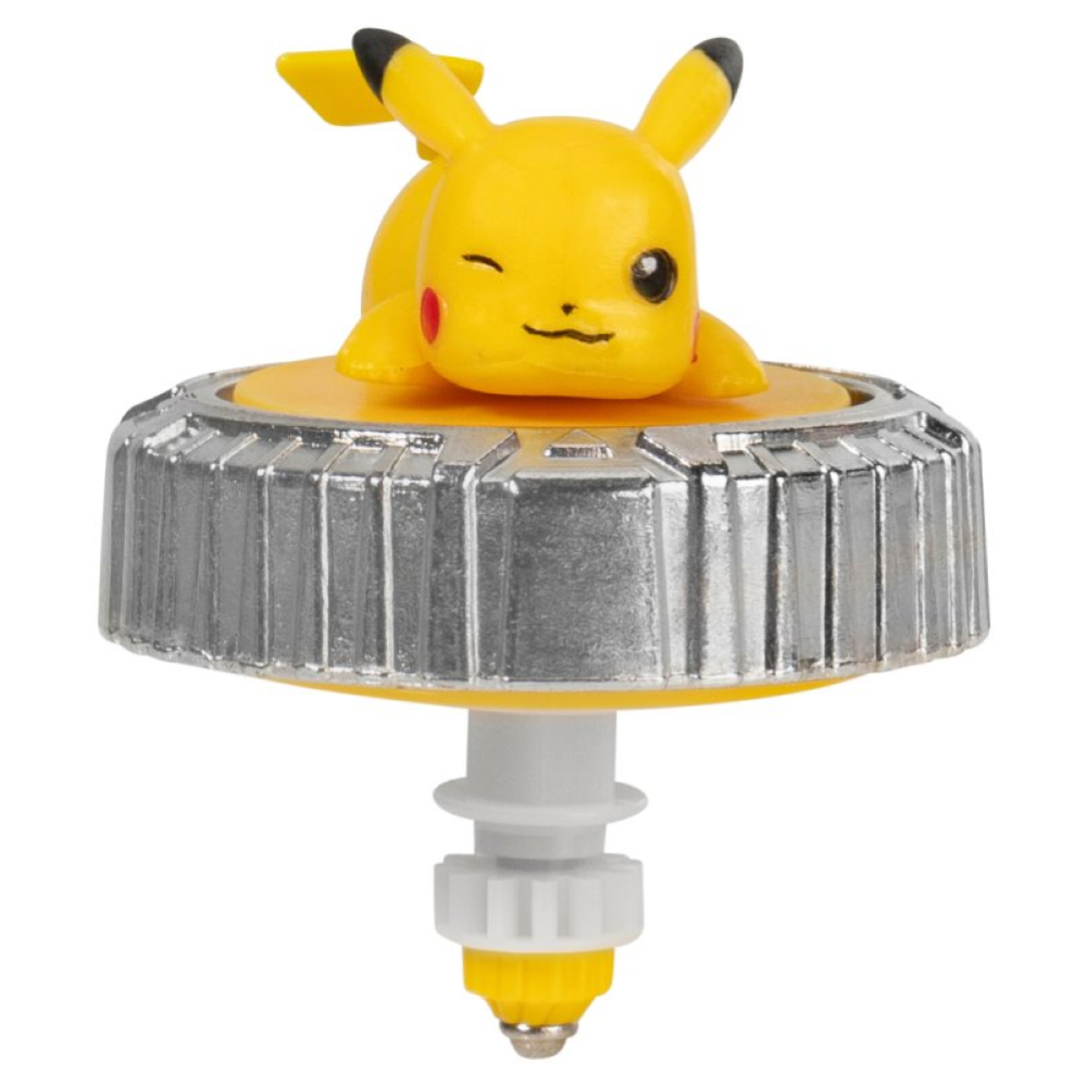 Il set include un'arena di battaglia, due Battle Spinner con Pikachu e Mew, e due lanciatori di Poké Ball Spinner. Carica i Battle Spinner nei lanciatori di Poké Ball Spinner e tira indietro la corda avvolgibile.