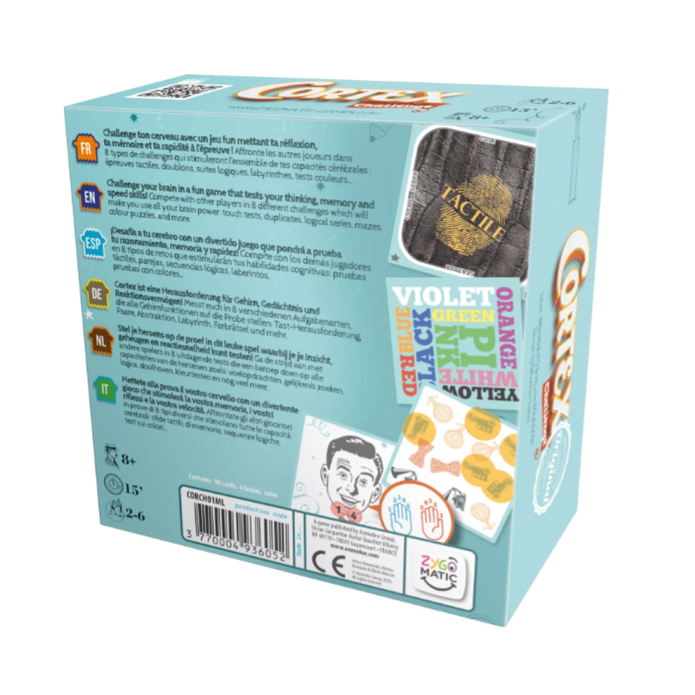 Mettetevi alla prova con questo semplice e divertente party game. Osservate bene le carte e siate veloci a trovare la soluzione corretta! Combina questa scatola con le altre dello stesso livello (Cortex² Challenge e Cortex³ Challenge) per partite sempre più avvincenti!