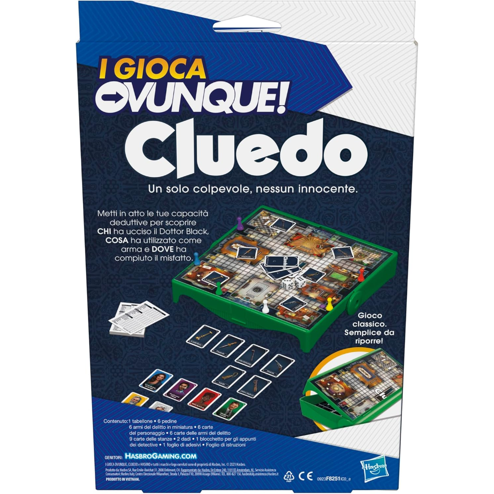 VERSIONE PORTATILE DEL GIOCO CLUEDO: la stessa giocabilità classica in un formato compatto! Questo gioco Cluedo, della serie I Gioca Ovunque, è una mini versione portatile del gioco da tavolo ricco di mistero Cluedo. Adatto dagli 8 anni in su
