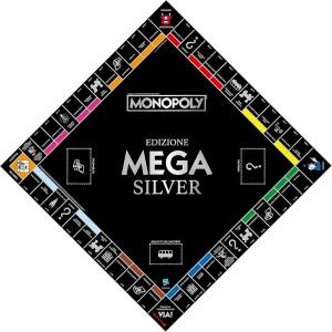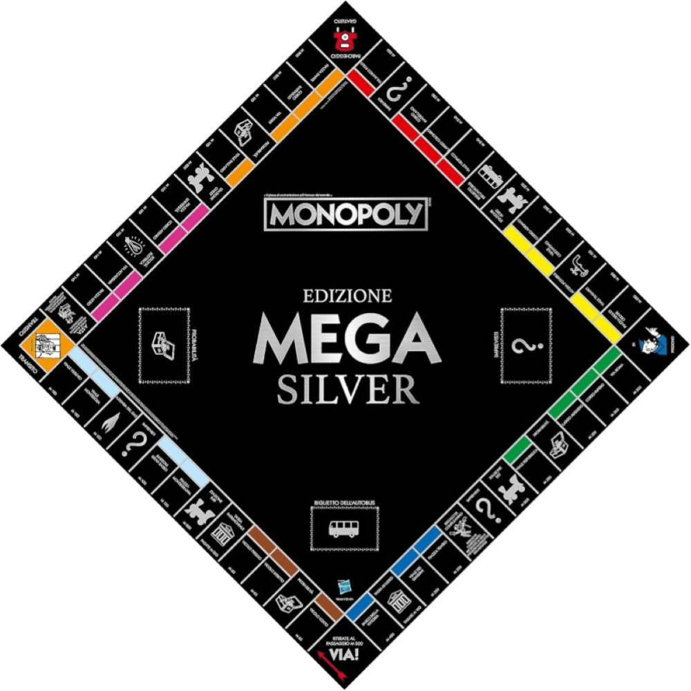 Monopoly Mega Silver è un hotel gioco da tavolo per tutti da 8 anni in su. Perfetto per le feste e come giochi di societa, con più proprietà e nuove regole.