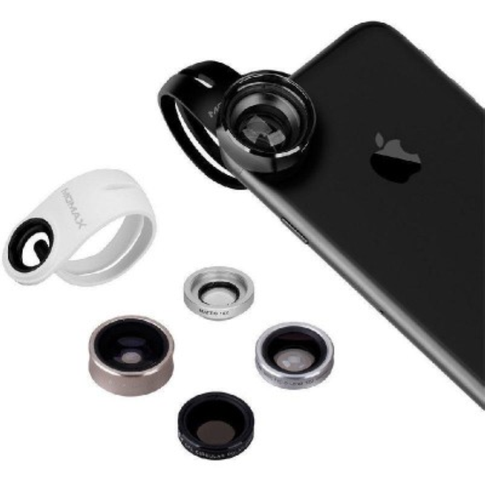Pratico 5 in 1:Teleobiettivo 2.5x, il grandangolo di grado esperto da 120°, fish-eye da 180°, macro 15x e
