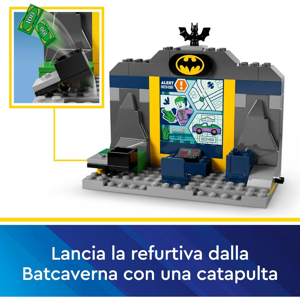 Grande set LEGO® Batman™ per bambini dai 4 anni in su: questo giocattolo è composto da 184 pezzi e la Batcaverna misura 11 cm di altezza, 13 cm di larghezza e 6 cm di profondità