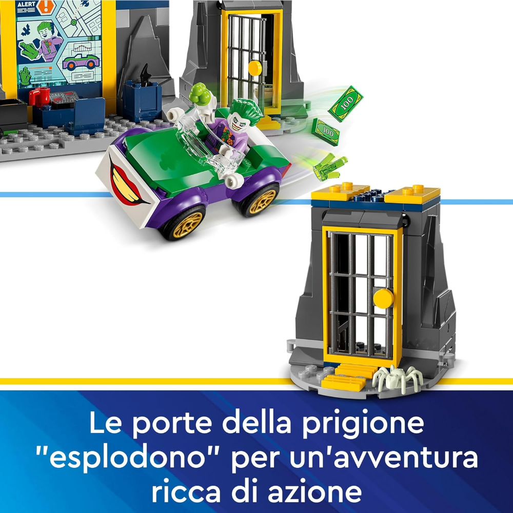 Molto più di un semplice set di gioco con Batcaverna, questo fantastico giocattolo include anche 3 minifigure: Batman, Batgirl e i l Joker, un velivolo Batwing™ con ali pieghevoli, un’auto a spinta, lancia-dischi, prigione e accessori divertenti tra cui un ragno luminescente. Le funzionalità pratiche includono una catapulta con interruttore e porte della prigione "esplosive".Il set contiene un telaio Starter Brick per aiutare i bambini a iniziare la costruzione. Le istruzioni intuitive sono fornite sotto forma di una colorata guida con storie illustrate. Per un ulteriore divertimento digitale, i costruttori possono ingrand ire, ruotare i modelli in 3D e monitorare i loro progressi utilizzando la divertente e intuitiva app LEGO Builder. Questo giocattolo creativo è un fantastico regalo LEGO Batman per i bambini e i supereroi in erba.
