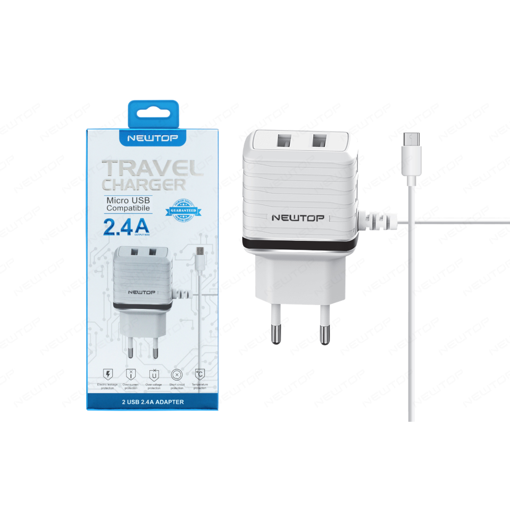 NEWTOP CM05 2 USB CARICABATTERIA DA MURO 2.4A CON CAVO MICRO USB