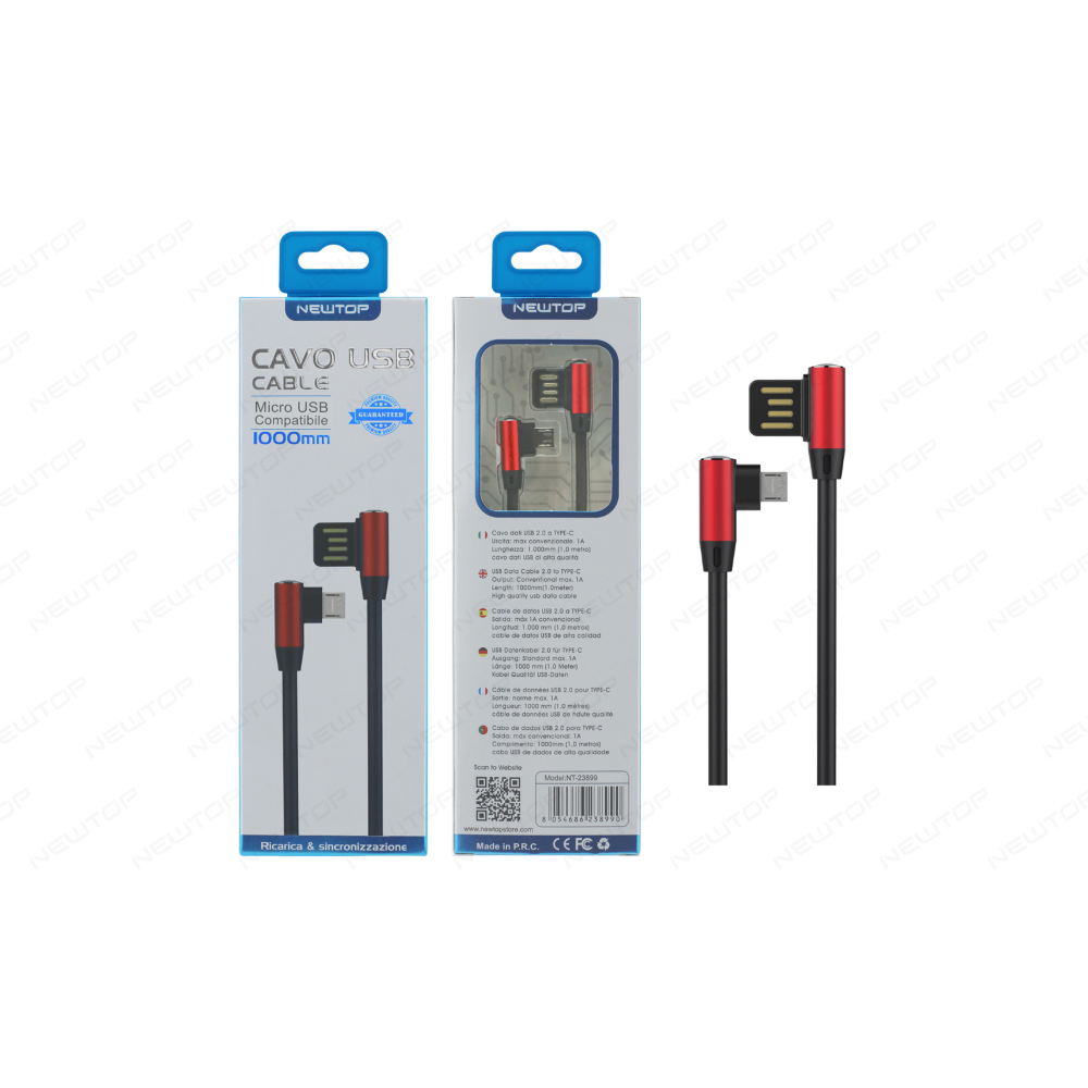 NEWTOP CU08 ANGULAR CAVO 100CM USB/MICRO USB (Micro usb - V8 -i9500 100cm - Rosso)