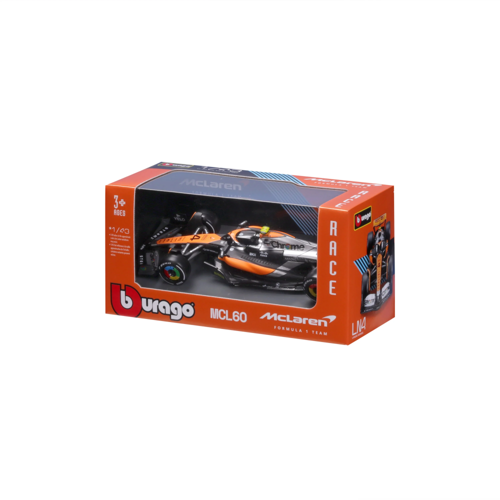 Entra nell'emozionante mondo della Formula 1 con la McLaren MCL60 2023 guidata da Lando Norris di Bburago.