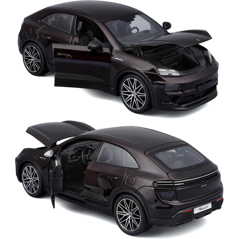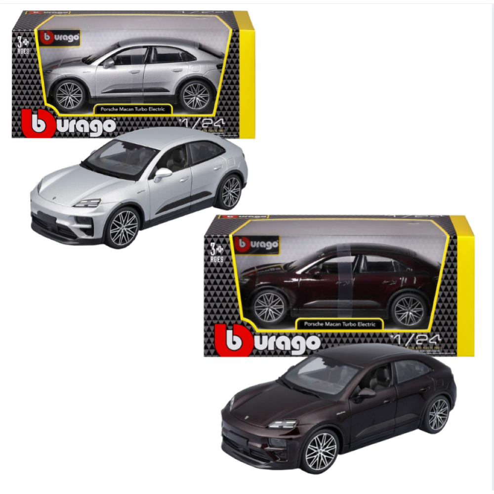 PORSCHE MACAN 4 ELECTRIC: Replica ufficiale in scala 1:24 del SUV elettrico Porsche, con linee dinamiche e dettagli curati che riproducono fedelmente l’innovativo design del modello originale.