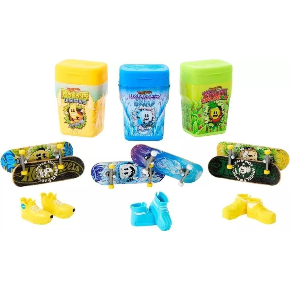 Porta il mondo dello skate ovunque tu vada con questo innovativo set Hot Wheels! Ideale per i giovani appassionati di skateboard, il prodotto si presenta come una confezione che ricorda un pacchetto di gomme da masticare e, al suo interno, nasconde due tavole da skate completamente assemblate e un paio di scarpine da skate, tutte caratterizzate da grafiche e colori coordinati.
