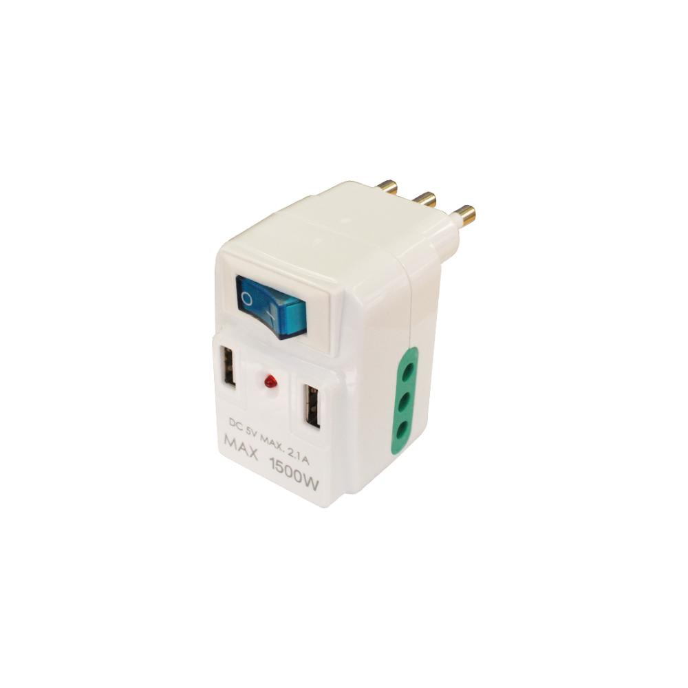 EXTRASTAR ADATTATORE 10A CON INTERRUTTORE CON 2USB+2PRESE 10A