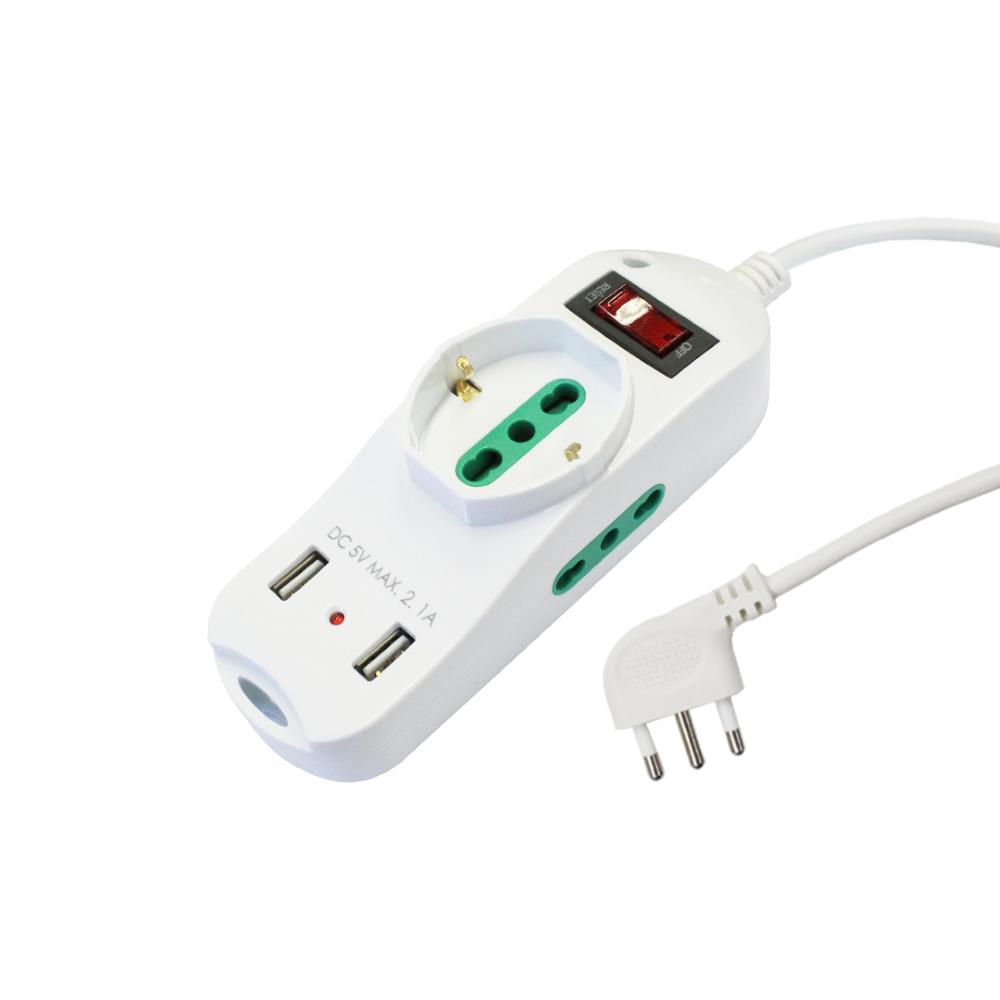 EXTRASTAR MULTIPRESA 10/16A+SCHUKO 2USB SPINA 10A CON SOVRACCARICO