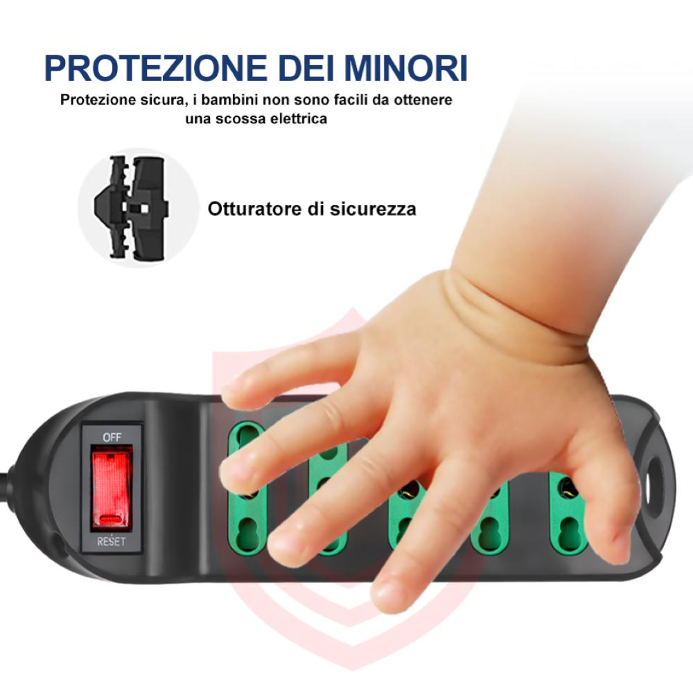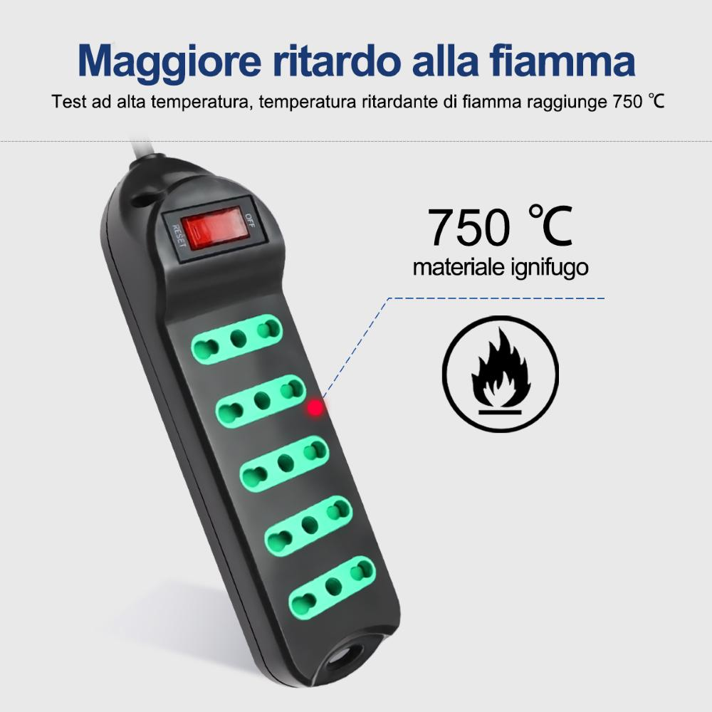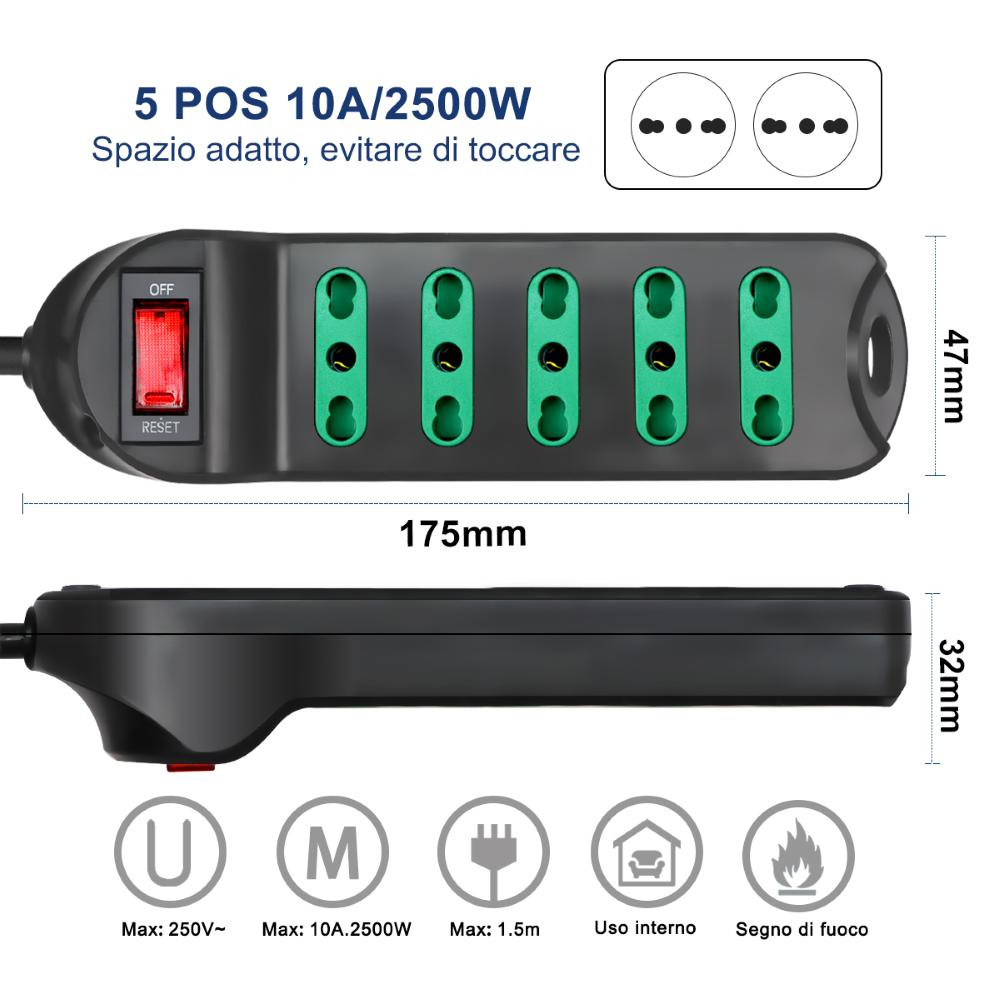 EXTRASTAR MULTIPRESA 5 POSIZIONI 10/16A SPINA 10A CON SOVRACCARICO