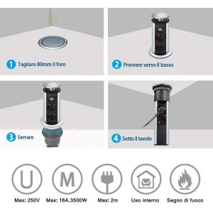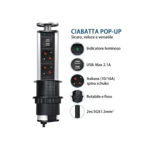 EXTRASTAR MULTIPRESA DA SCRIVANIA 3 POSIZIONE BIPASSO 2 USB 2.1A