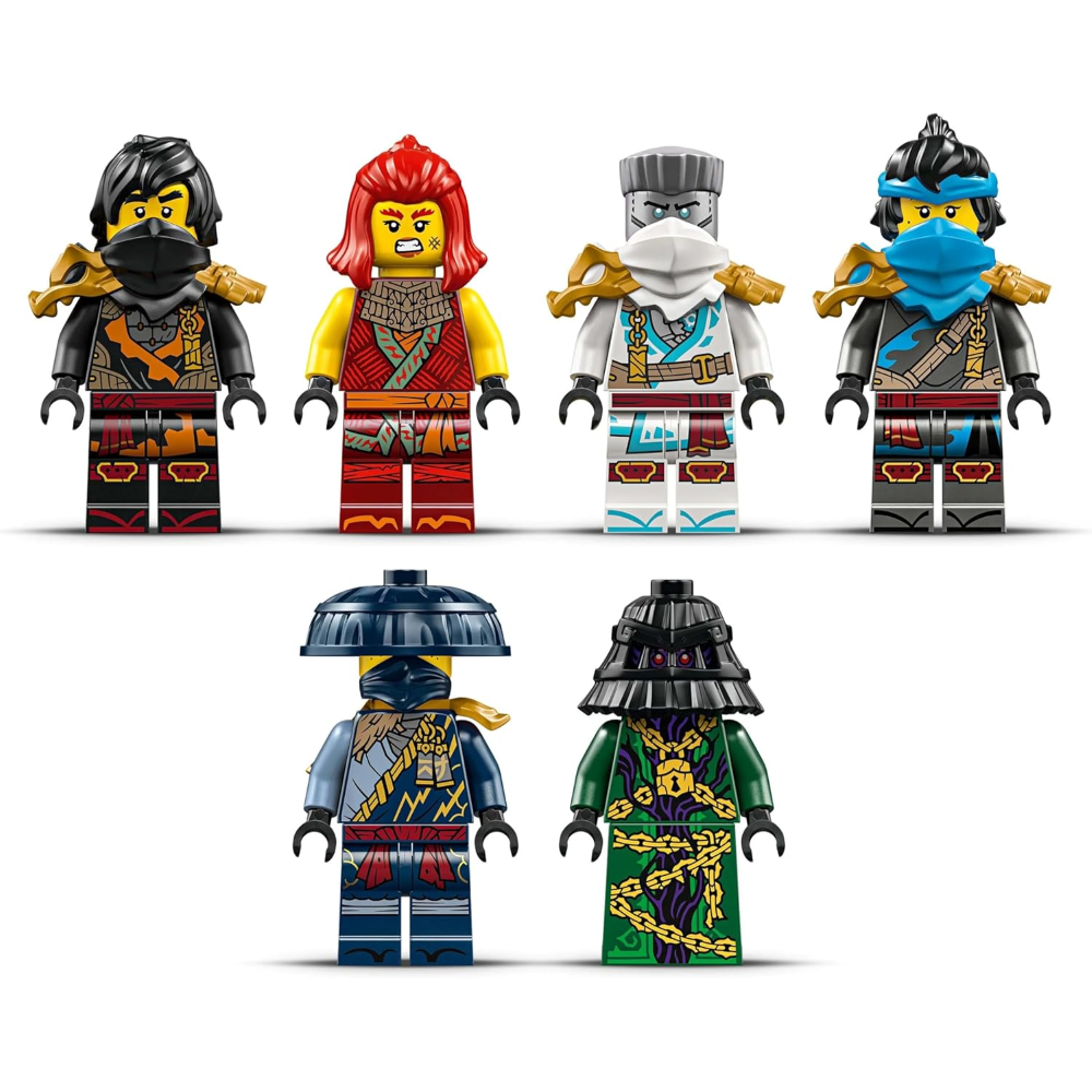 Comprende 6 minifigure: questo gioco di ruolo include i personaggi NINJAGO di Zane, Cole, Wyldfyre, Nya, Rogue e Zarkt, dotati di varie armi e di una spada rivelatrice traslucida, che aiuta a mostrare una mappa segreta sul tavolo del capitano