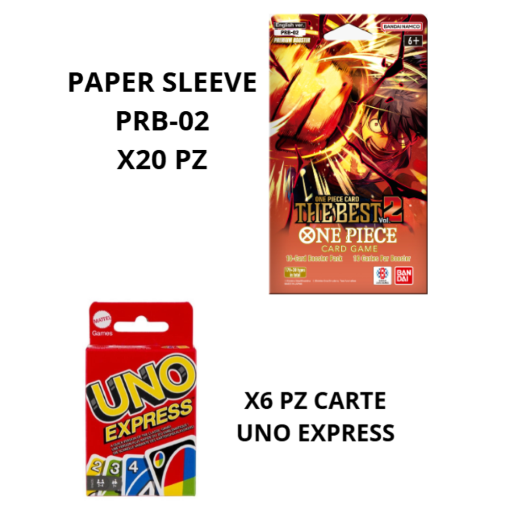 BUNDLE 20X One Piece Card Game BUSTINA PAPER SLEEVE PRB-02 + 6X CARTE UNO EXPRESS