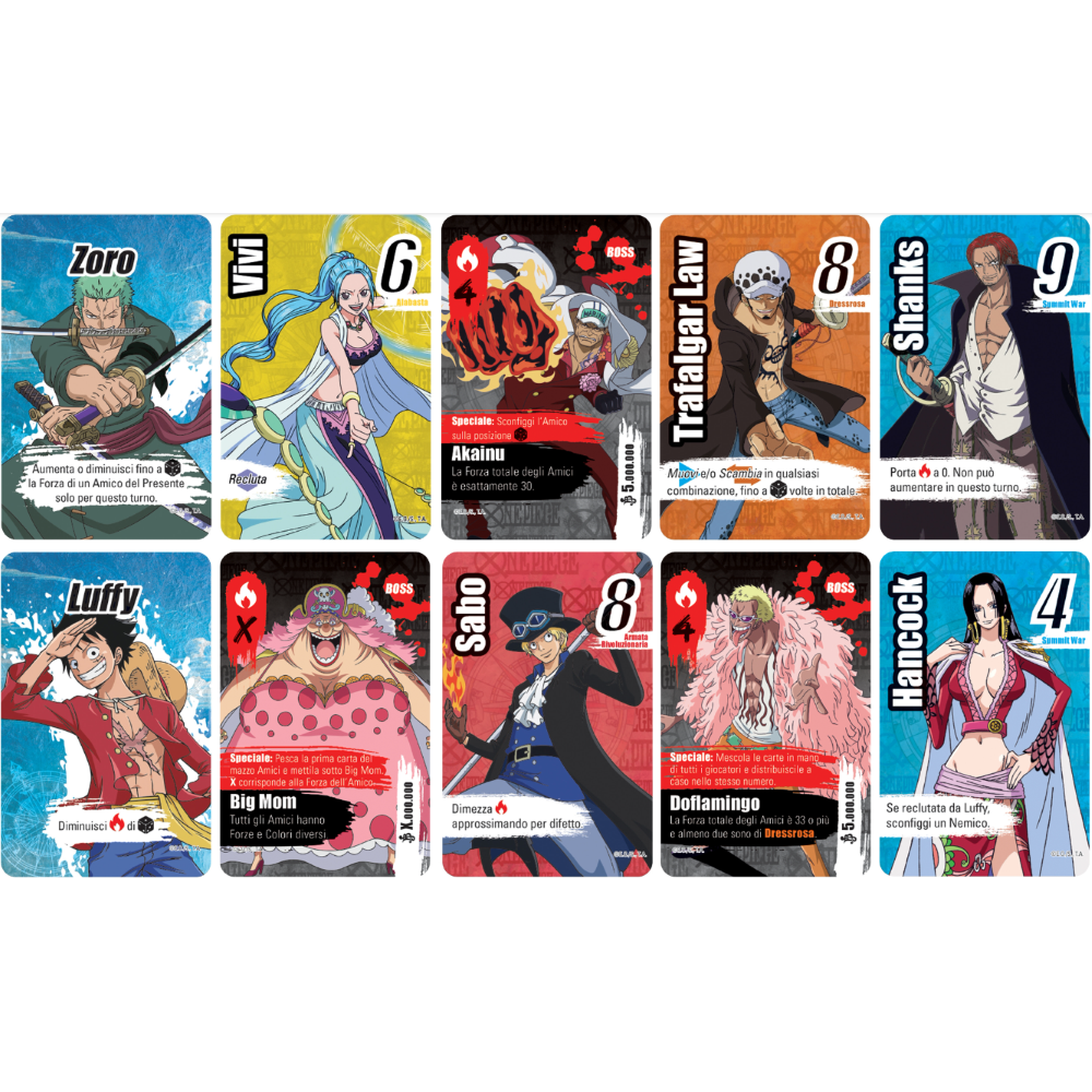 ONE PIECE NAKAMA è una festa per tutti gli appassionati di One Piece grazie alle numerose carte che presentano i membri della ciurma, gli alleati, i nemici e i Boss a partire dal ciclo narrativo di Romance Dawn fino al recente arco di Wano Kuni. Il sistema di regole dinamico consente a questo gioco di essere apprezzato anche da chi non conosce il manga.