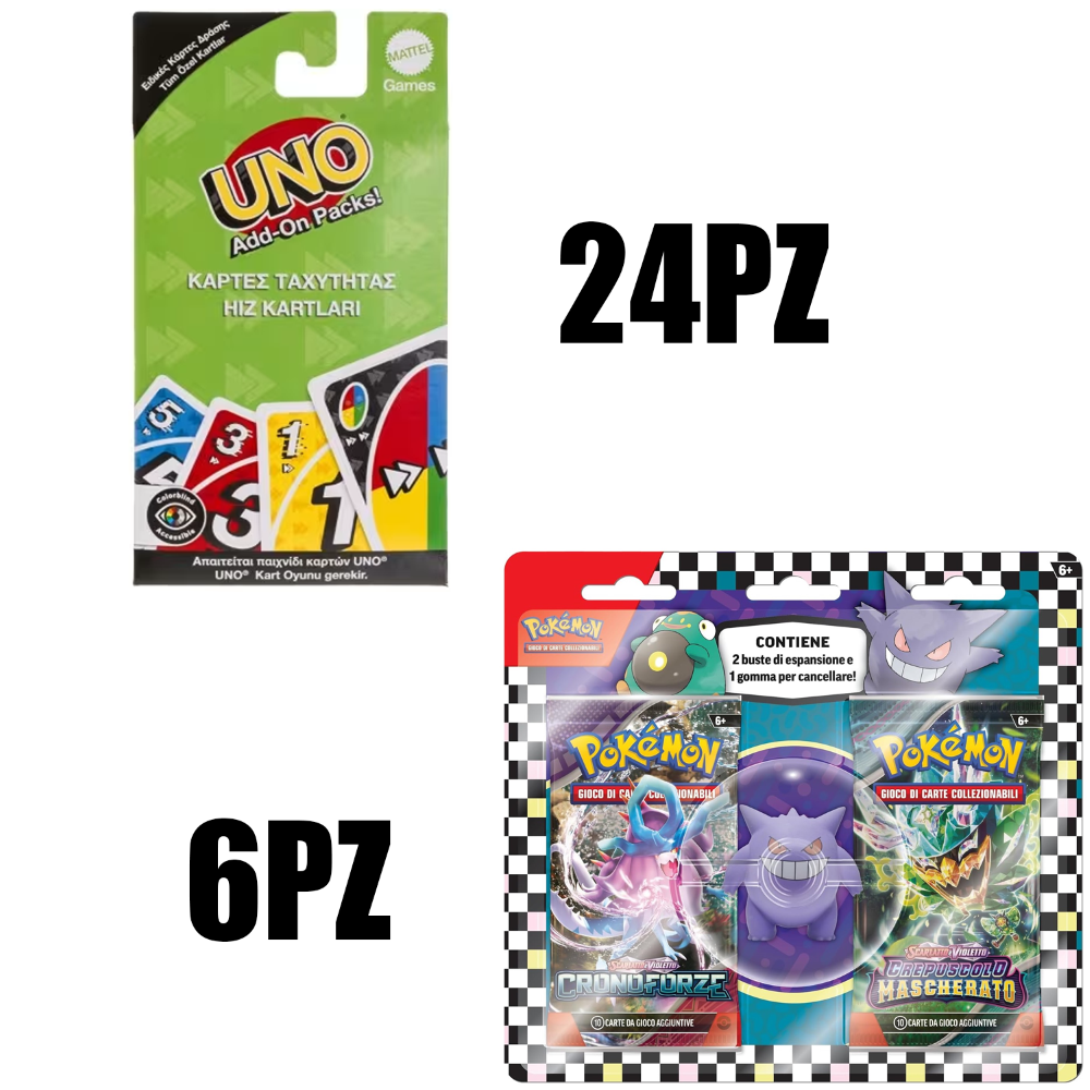 BUNDLE 6X COLLEZIONE GOMMA POKEMON + 24 UNO ADDON PACKS