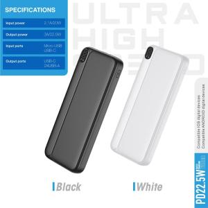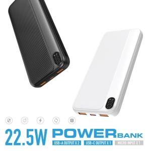 L'ingresso Micro di DC 5V=2.1A e l'ingresso Type-C di DC 5V=3A/9V=2.1A/12V=1.67A (20W MAX) consentono una ricarica rapida del power bank stesso. L'uscita Type-C e USB, entrambe di DC 4.5V=5A/5V=4.5A/9V=2.23A/12V=1.67A (22.5W MAX), garantiscono una ricarica veloce dei tuoi dispositivi compatibili con una potenza impressionante di 22.5W.