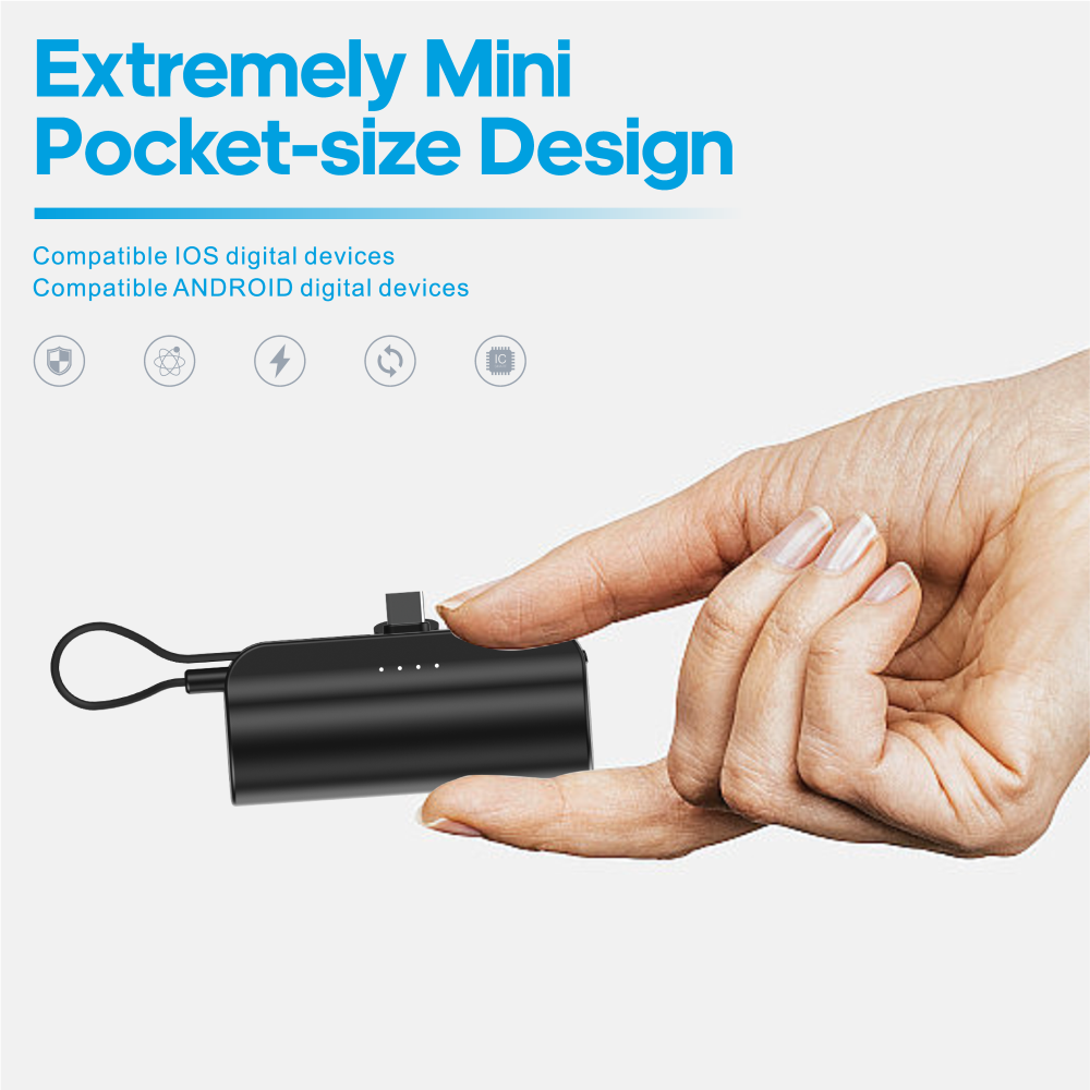 NEWTOP PB40 MINI POWER BANK 5000MAH CON CAVO TYPE-C NERO