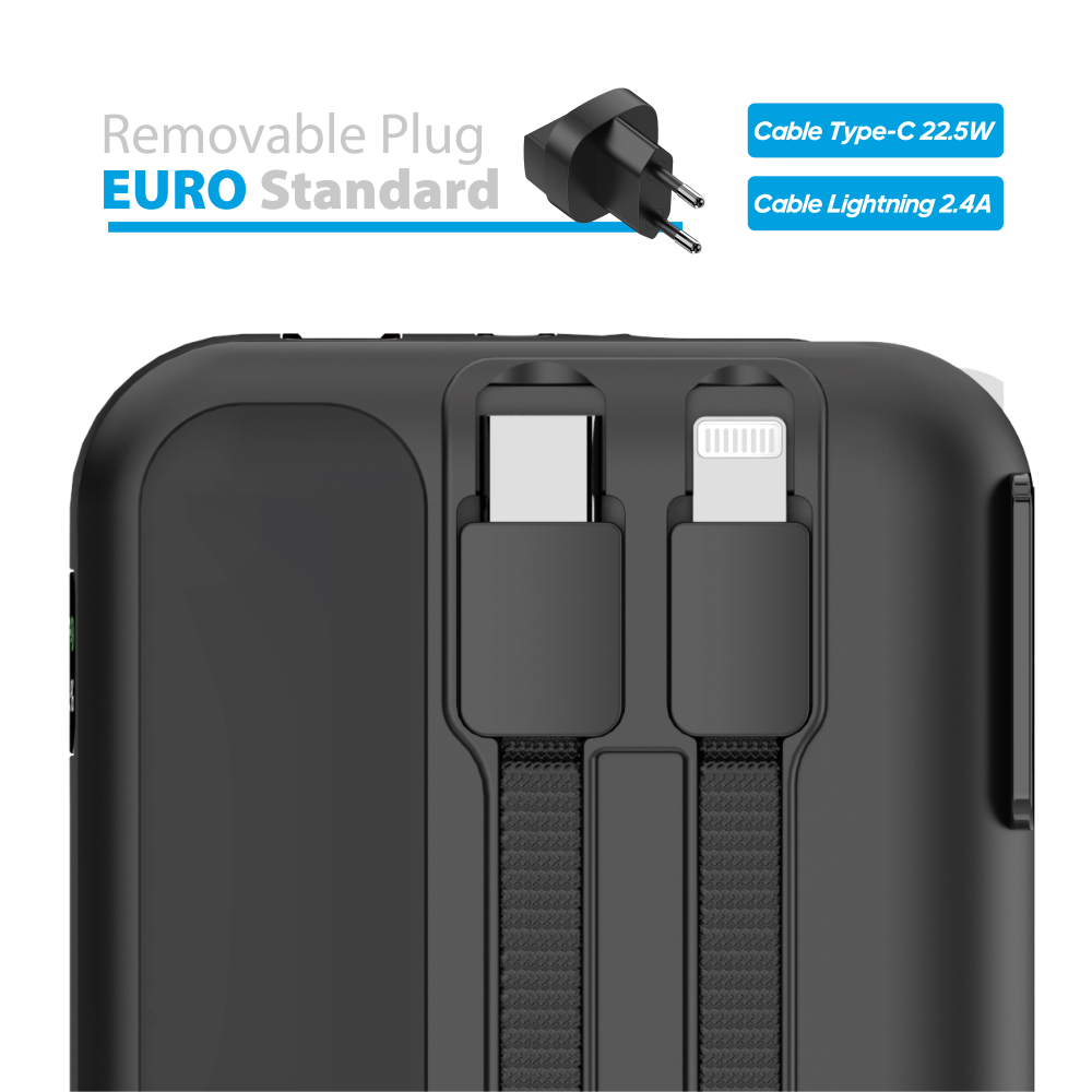 Spina rimovibile: utilizzabile solo per ricaricare il power bank da presa AC