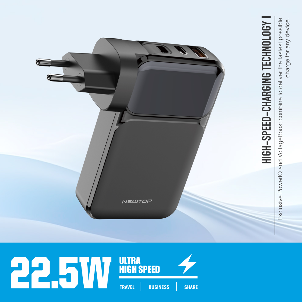 Uscita Type-C (PD22.5W Max): 5V?3A, 9V?2.22A, 10V?2.25A, 12V?1.67A