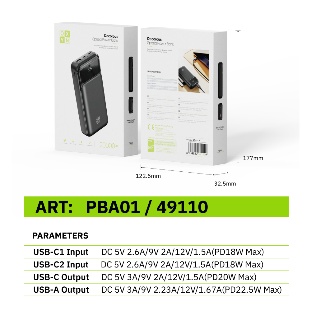 OXYN PBA01 POWER BANK 20000 MAHOXYN PBA01 POWER BANK 20000 MAH