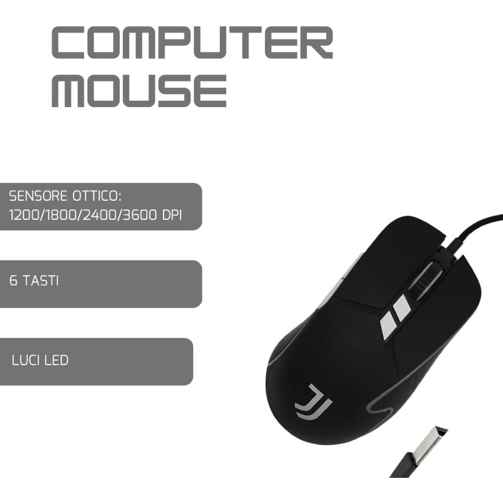 TECHMADE COMBO SET GAMING MOUSE+PAD UFFICIALE JUVENTUS TM-XJG36-JUV