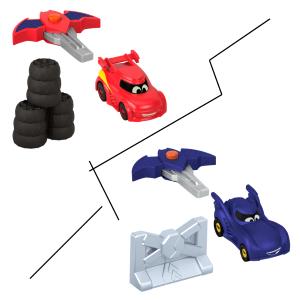 I bambini possono lanciarsi in divertenti corse e scontri Batwheels con questa collezione di macchinine giocattolo in scala 1:55 ispirate ai personaggi della serie DC Batwheels