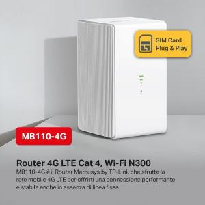 MERCUSYS Router 4G LTE Wi-Fi N300 fino a 300Mbps MB110-4G V2
