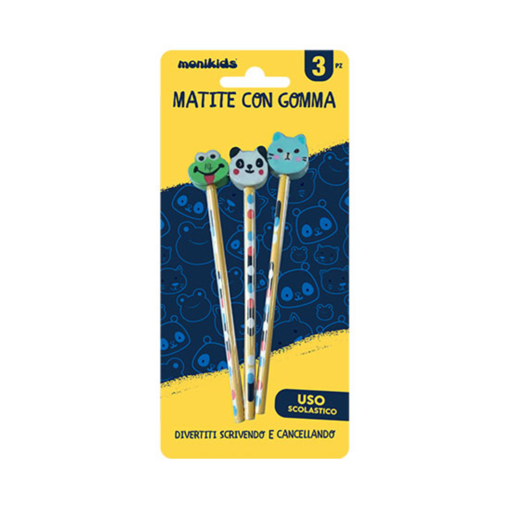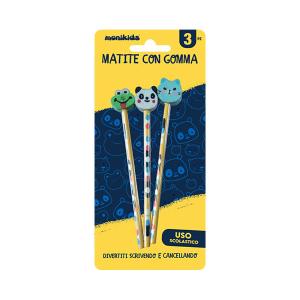 MONIKIDS CREATIVE - MATITE CON GOMMA 3 PZ FACE ANIMAL BL.12PZ