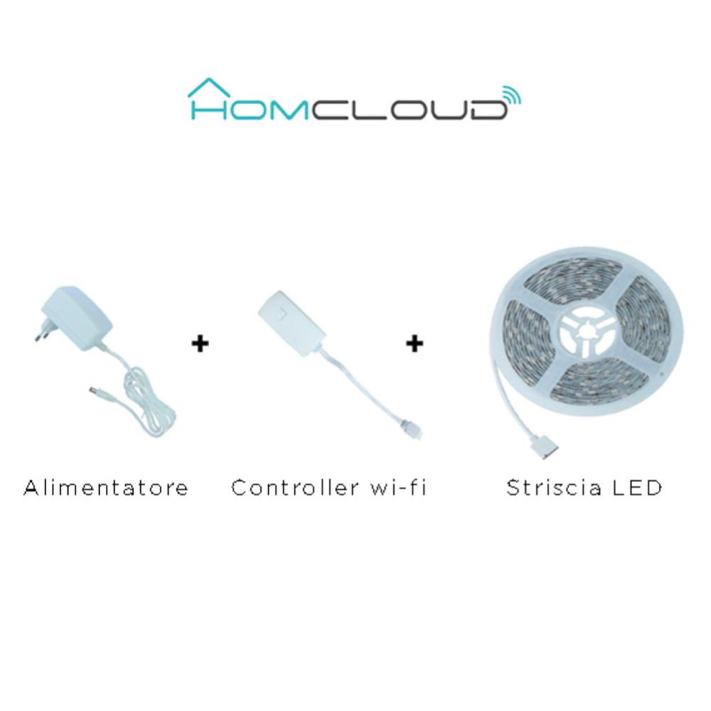 HOMCLOUD Striscia LED RGB + BIANCO CALDO wi-fi Kit EE-24WSL5 dimmerabile 5M