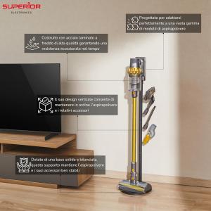 Perfetto per ottimizzare lo spazio – Il suo design verticale consente di mantenere in ordine l’aspirapolvere e i relativi accessori senza occupare troppo spazio, ideale per piccoli appartamenti, uffici e ambienti domestici con spazio limitato;