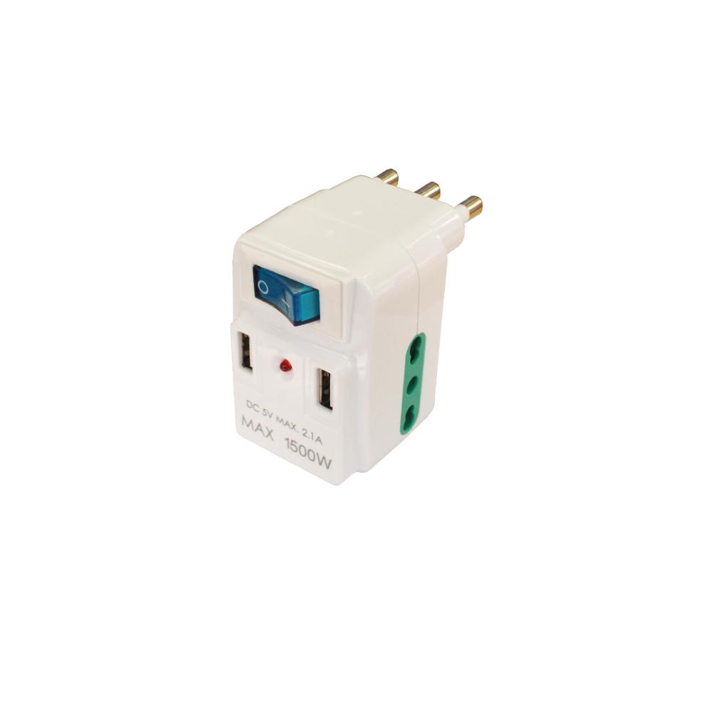 EXTRASTAR ADATTATORE 16A CON INTERRUTTORE CON 2USB+2PRESE 10/16A