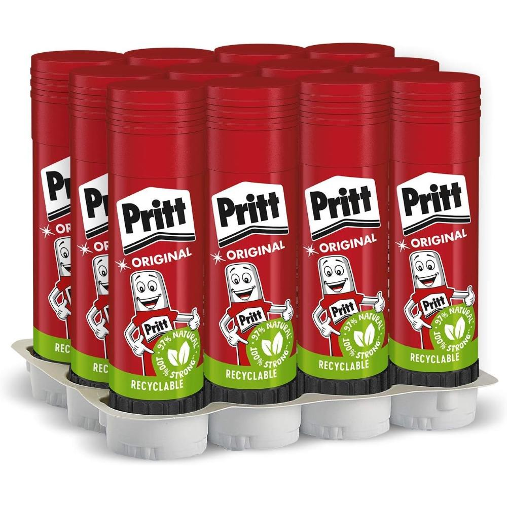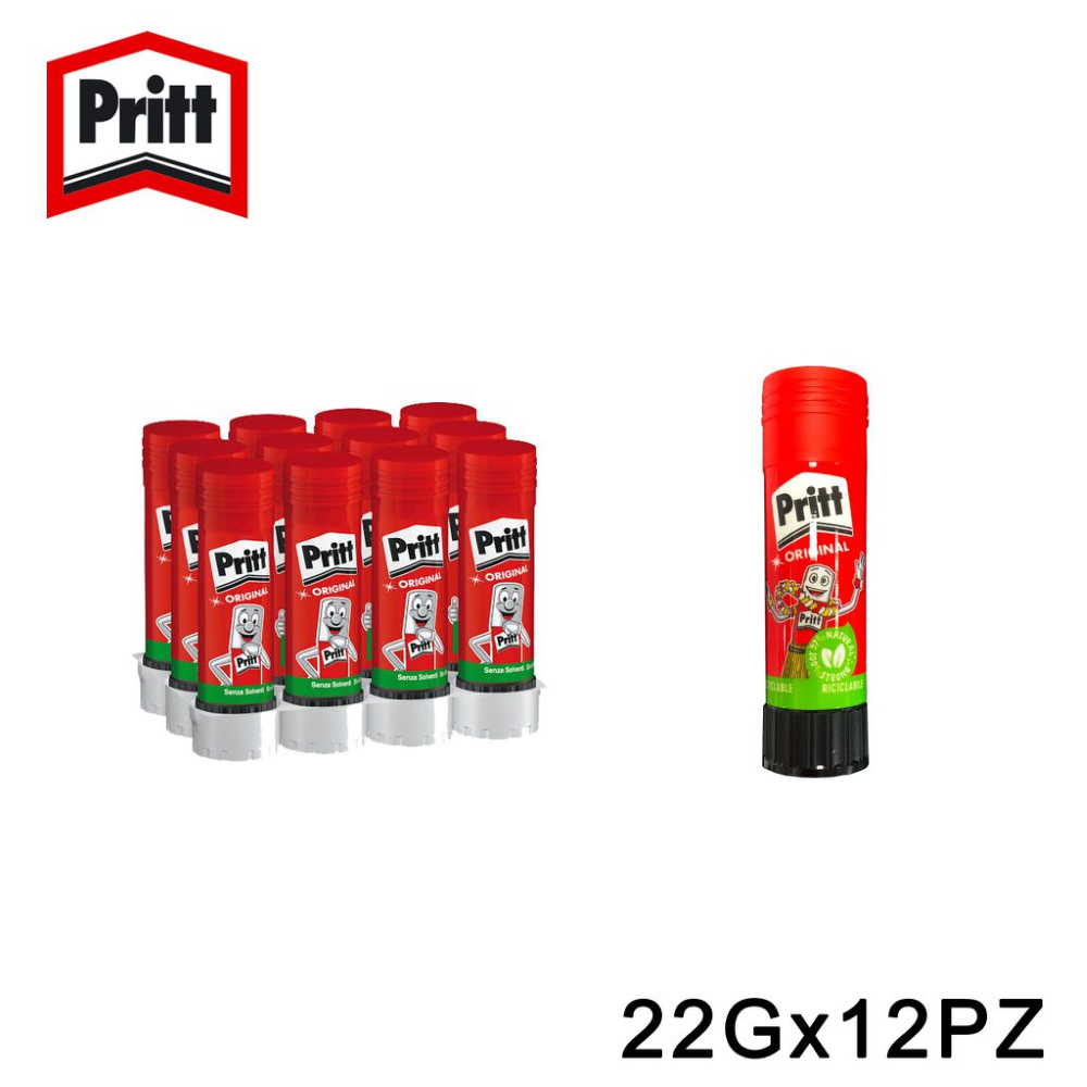 Confezione – Pritt Colla Stick, forte colla stick bambini senza solventi per carta, tessuto, cartone, foto ecc., 97 % di ingredienti naturali, basso contenuto d'acqua, 12x22g, Codice articolo 199986